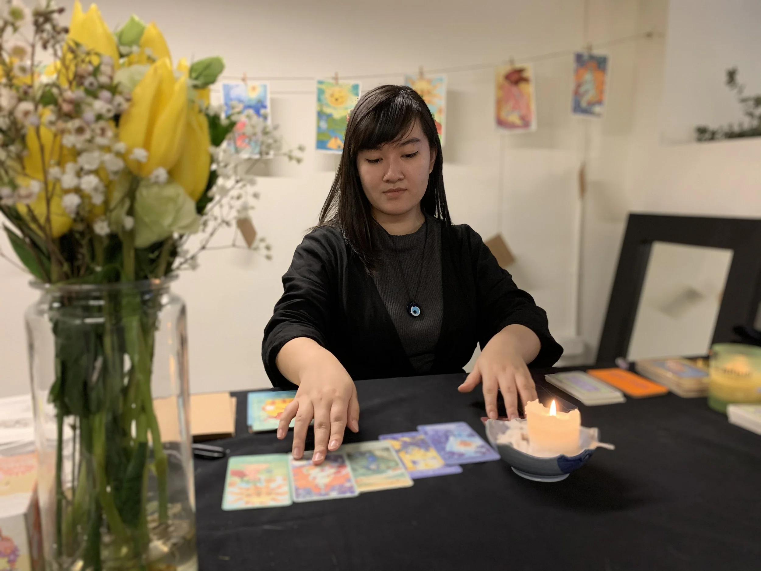 L’Œil de L’Âme Tarot is a contemporary reimagining of the tarot that emphasises the fluidity of watercolour and the depth of the subconscious. Developed over two years, the deck features 86 cards that weave together art history, theatre, dreamscapes, and the artist's own experiences. It is currently in the collection of Tate Library, Asia Art Archive, and the College of Psychic Studies.